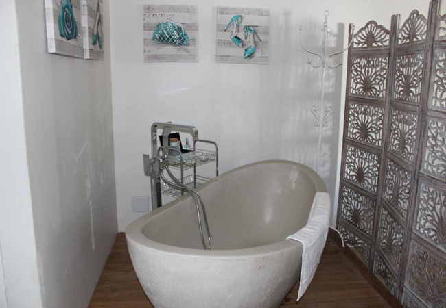 Phoenix 3 is an open plan air-conditioned unit that is one of three apartments with a separate entrance. The bedroom area has a double bed and there is an open en-suite bathroom with a slipper bath, shower and toilet. The kitchen is well-equipped and features a stove, oven, fridge-freezer and microwave. There is also a built-in braai. The dining area has seating space for four people, while the lounge has comfy seating and a TV with selected satellite channels.
