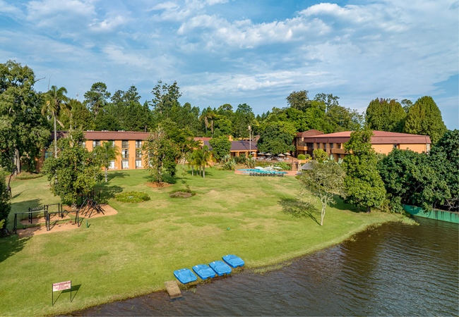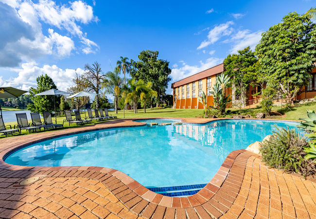 Guests can enjoy relaxed outdoor meals alongside the pool overlooking the lake. The Kingfisher Restaurant offer a vast choice from a la carte or delicious buffet and the Feathers Bar is a fun place to meet for a sundowner or night-cap. Guests have access to the gym. Parking is available on site.