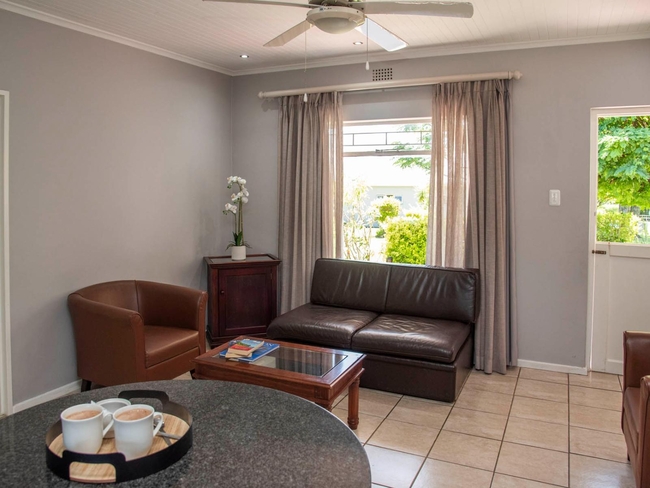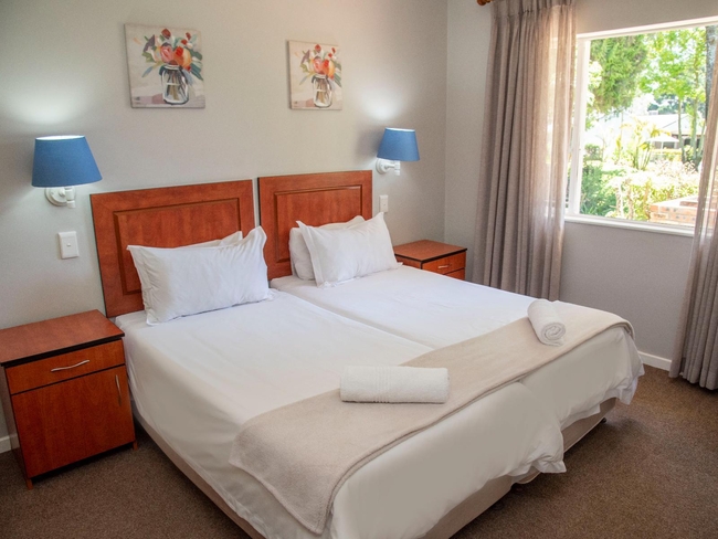 This unit features two bedrooms, each furnished with two single beds, and a full bathroom with both a bath and a shower. The lounge area includes a sleeper couch, providing additional space for relaxation. A fully equipped kitchen with a gas stove, electric oven, microwave, toaster, refrigerator, bar fridge, and coffee/tea facilities ensures a comfortable self-catering experience. Guests can also enjoy private braai (barbecue) facilities and dedicated parking. Modern conveniences such as Wi-Fi, air conditioning, a ceiling fan, a TV with DSTV/Satellite channels, and a safe enhance the comfort of the stay. A cleaning service is available for added convenience. The unit boasts a scenic garden view, complemented by outdoor furniture and a dining area for guests to enjoy the fresh air. For a pleasant stay, the unit is strictly non-smoking.