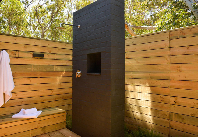 All rooms have a Queen-size bed and an en-suite bathroom with a shower. There is also a private outside shower. The rooms have a fireplace and seating area. Outside is a private deck with chairs where you can enjoy a sundowner or your meals.