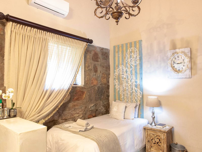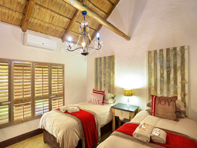 The main bedroom is fitted with a double bed and features a private en-suite bathroom. The second and third bedrooms are each equipped with twin beds and share a bathroom. The accommodation also offers a lounge and a fully equipped kitchen for your convenience. Outside, guests can relax on the stoep and make use of their own private braai area. Guests will enjoy the convenience of complimentary Wi-Fi, air conditioning, and a non-smoking environment. A cleaning service is also available. Bathroom amenities include a hairdryer, separate tub and shower, and a combination bathtub and shower option. Kitchen amenities include a refrigerator, microwave, full kitchen, and kitchenette, all designed to cater to self-catering needs. Additionally, a private patio offers a pleasant outdoor space.