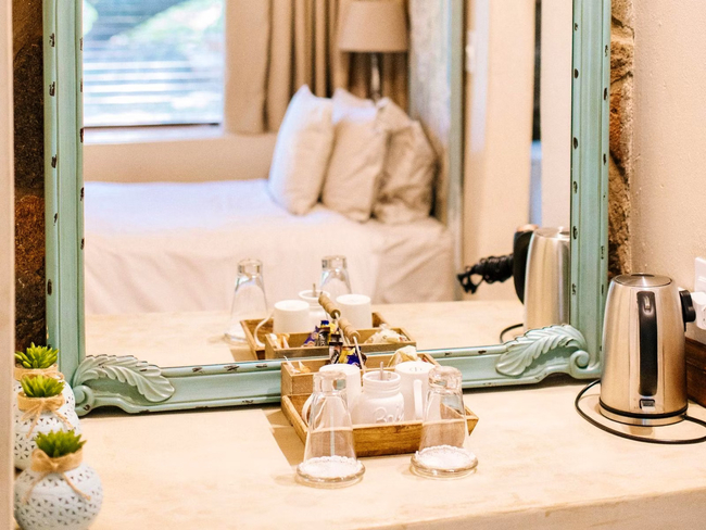 The single bedroom includes an en-suite bathroom and is furnished with a bar fridge and a coffee stand for added convenience. Guests also have access to an on-site restaurant. The room offers complimentary Wi-Fi, air conditioning, and a non-smoking environment. Bathroom amenities include a shower, hairdryer, and coffee and tea facilities.