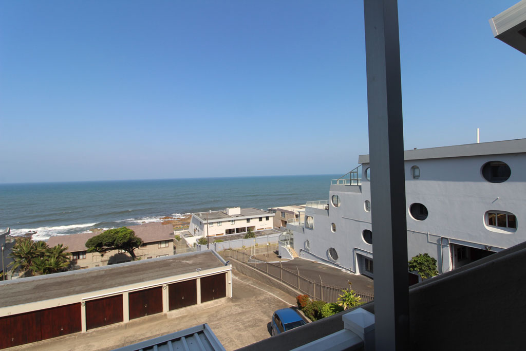 The living area opens up onto a lovely balcony which has gas braai facilities and a view of the ocean.