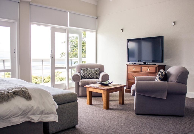 The luxury rooms at Plett Lookout Lodge are offered on a bed only basis and each boast a King-size bed and an en-suite bathroom with a shower.