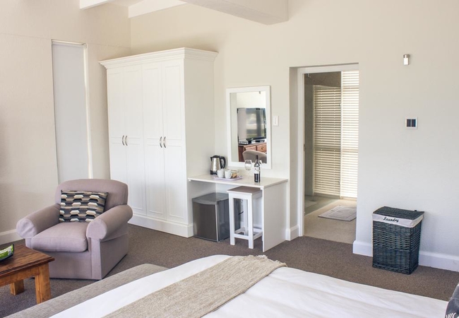 King size bed (extra length), en-suite with shower, TV, seating area. The rooms have a TV with DStv which is set on the Movie Channel. All rooms have a decoder but if guests want to watch in the TV room, they are welcome. There are two Wi-Fi networks available in the house.
