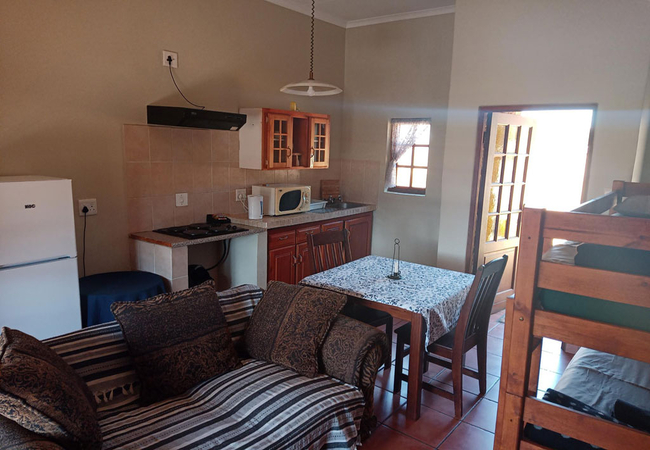 Poachers is a self catering cottage ideal for a peaceful break away. The bedroom is furnished with a Queen-size bed and has a cupboard and vanity. The en-suite bathroom is fitted with a spa bath overlooking the valley, a toilet and basin. The chalet is serviced daily, and the bedding, towels are provided. The unit has a kitchenette with a fridge, a microwave, a stove, crockery, and cutlery. The chalet also features a fireplace and a private patio with braai facilities.