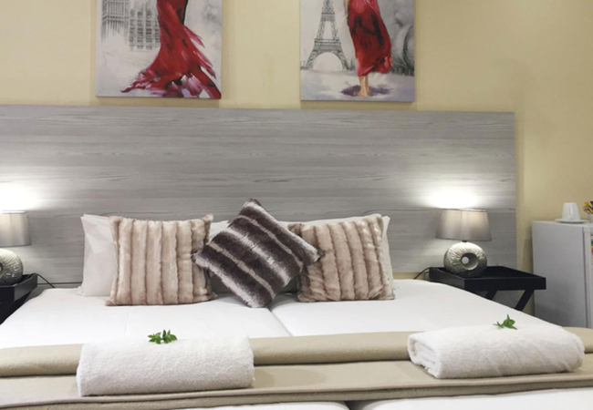 The Luxury Rooms are furnished with twin single beds. The en-suite bathroom is fitted with a shower, toilet and basin. High-quality linen including towels is provided. Each room has a small work table and chair, a flat-screen TV with Openview channels, a tea and coffee station, and free Wi-Fi internet access. These rooms have access to the swimming pool patio.