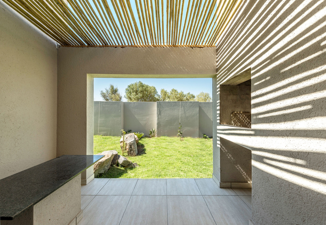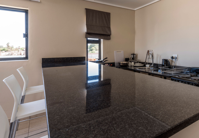 Air-conditioned, en-suite, with self catering facilities. There is also a small work table and chair, flat screen TV and a variety of selected DSTV channels to choose from. High-quality linen including towels are provided.