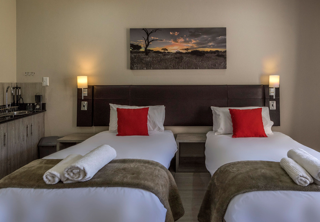 Each room is air-conditioned, with self catering facilities. There is also a small work table and chair, flat screen TV and a variety of selected DSTV channels to choose from. High-quality linen including towels is provided.
