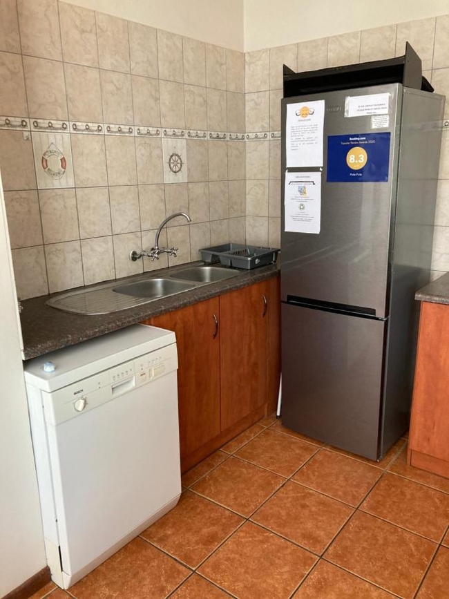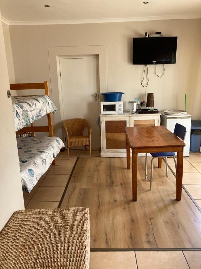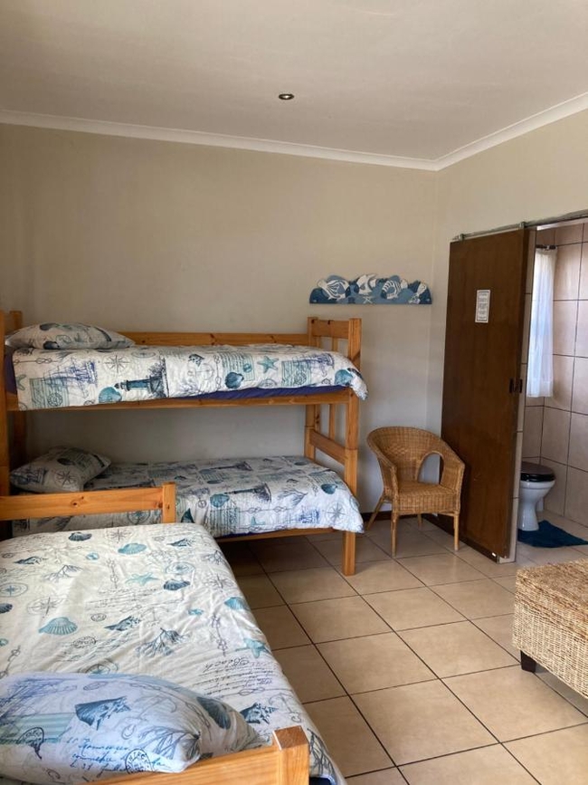 Located in the picturesque village of Witsand, at the mouth of the Breede River in the Western Cape, "Pole Pole" is a self-catering holiday retreat. The house accommodates up to 11 guests with its 4 bedrooms and 3 bathrooms, alongside an open-plan kitchen and living area. The main bedroom offers a double bed and an en-suite bathroom with a shower, toilet, and washbasin. The second and third bedrooms each have 2 single beds, sharing a bathroom equipped with a bath, shower, toilet, and washbasin. The fourth bedroom is designed to host additional guests with 2 bunk beds, a single bed, and an en-suite bathroom that includes a shower, toilet, and washbasin. The kitchen is fully outfitted for self-catering, featuring a stove, oven, fridge-freezer, microwave, and all necessary cutlery and crockery. There is a breakfast bar with stools for informal dining, and the dining area itself seats 6 comfortably. The lounge is furnished with a cozy suite and a flat-screen TV with Openview HD channels, and guests are invited to bring their DStv decoder and smart card. The house also includes an indoor braai area and off-street parking. In anticipation of load shedding, a gas ring and rechargeable light bulbs are provided for guests' convenience.