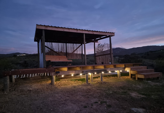 There are tranquil walks in our labyrinth, through our pomegranate orchards, and renosterbos rambles. You can relax in the hammock sunk into your deck or gaze at the sunset and evening starts at our star deck. You can chat to the hosts about the off-the-grid eco-friendly lifestyle – right down to the 350 square metre greenhouse, heavy with veggies, herbs and more.