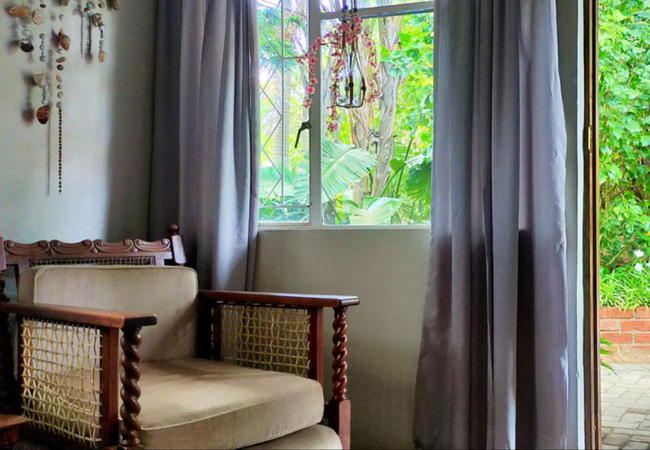 The unit leads out to a spacious communal courtyard with an outside braai and outdoor furniture, perfect for having meals together. Secure parking and Wi-Fi are available.