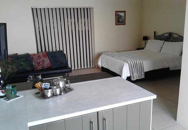 The open plan unit is furnished with a double bed. It has an en-suite bathroom and a modern kitchen with a breakfast bar. There is also a lounge area. Port House Guest House rooms include a tea / coffee station, a TV with DStv and a DVD player, a hairdryer and a fridge. Linen and towels are provided.