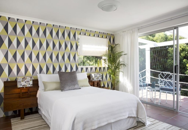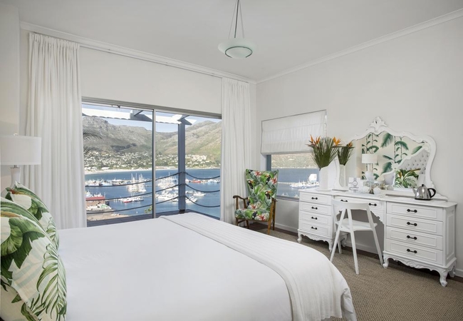 The Palms is furnished with a King-size bed and an en-suite bathroom with a shower and a bath. Guests have access to a television and to Wi-Fi Internet. There are sweeping views of the harbour and Chapman's Peak from the room.