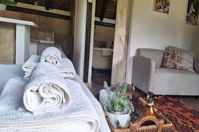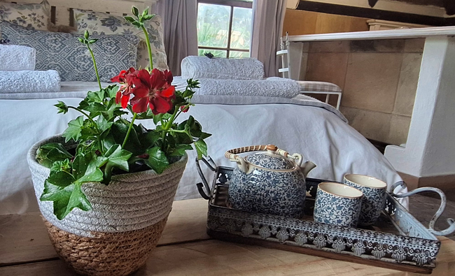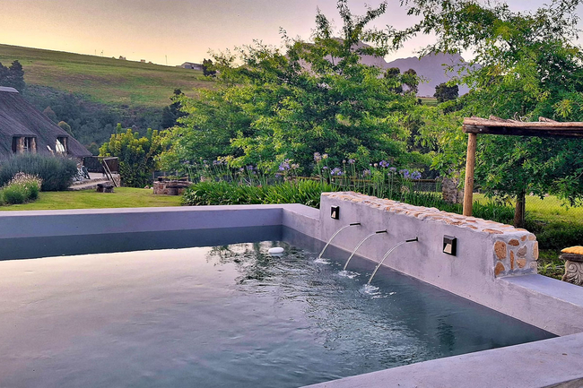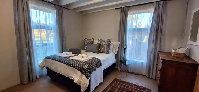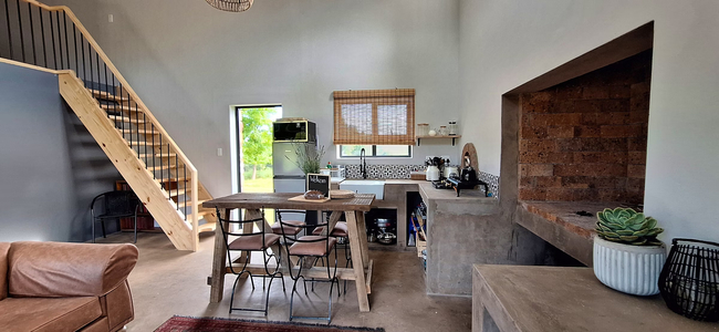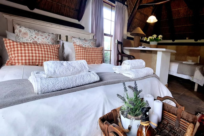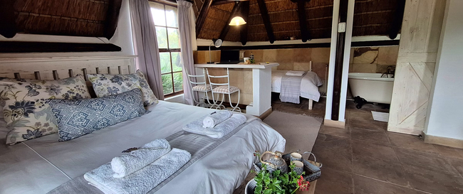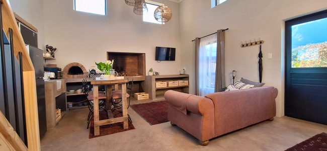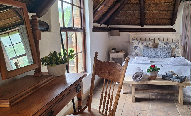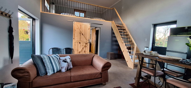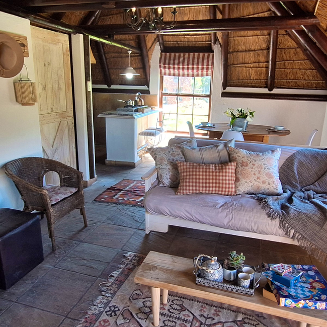 Lovely cottages on a farm. Great attention to detail. Comfortable bed, lovely amenities, firewood was chopped, stacked and ready for the braai. We truly enjoyed our stay with our daughter and two dogs. Love the little river picnic spot. The sunset was amazing!
