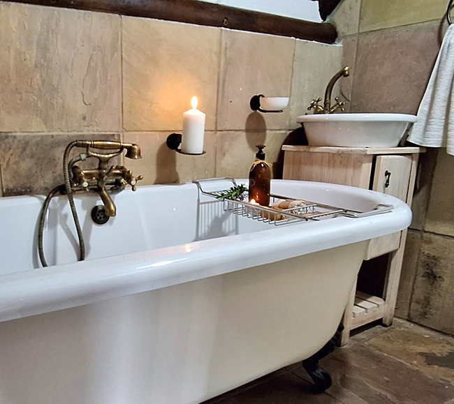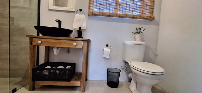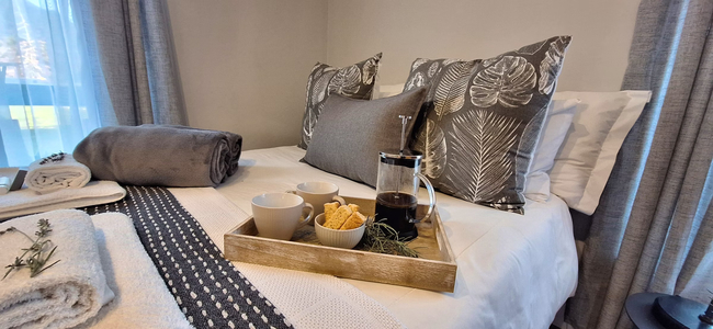 Ideally suited for 4 guests, this spacious cottage comprises 1 bedroom and 2 bathrooms. The bedroom is comfortably furnished with a double bed and a single bed and features an en-suite bathroom fitted with a Victorian-style bathtub. The second bathroom is fitted with a shower. Linen and bath towels are provided. The open-plan living area features a well-equipped kitchen with a 2-plate stove and mini-oven, a 2-plate gas stove, a microwave, a kettle, a toaster, tea and coffee-making facilities, cutlery, crockery, and a breakfast bar with stools. The lounge includes a sleeper couch, a regular couch, and an electric fireplace. For guests' entertainment, there is a TV with DStv channels in each unit. Limited Wi-Fi is also available. The unit has its own private braai, and guests can also make use of the covered shared lapa. Secure covered parking is also available.