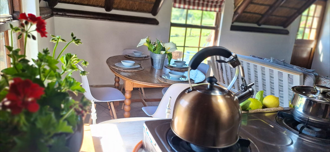 The accommodation consists of stone-built self-catering cottages. Each cottage is equipped with a well-stocked kitchen, complete with a fridge, microwave, two-plate stove with oven, and a kettle. There is a cozy seating area and a dining space with an electric fireplace, perfect for chilly evenings. Additionally, each cottage boasts private braai facilities, a television with access to all DStv channels, and unlimited Wi-Fi.