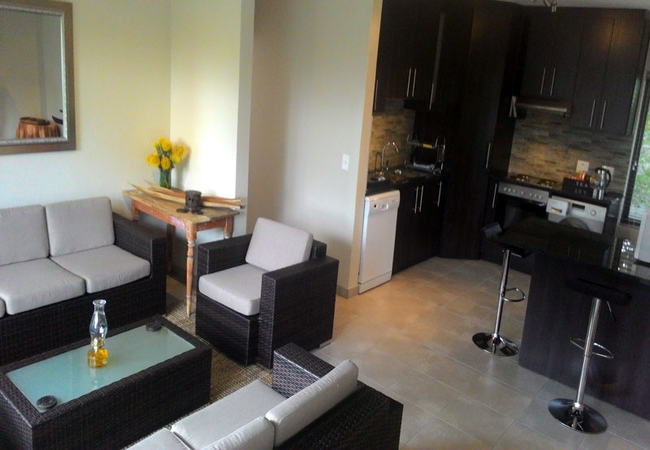 This luxury apartment or chalet is a complete home away from home. The 60m˛, one bedroom apartment is attached to a home, but has a separate entrance and is fully contained as a home on its own.
