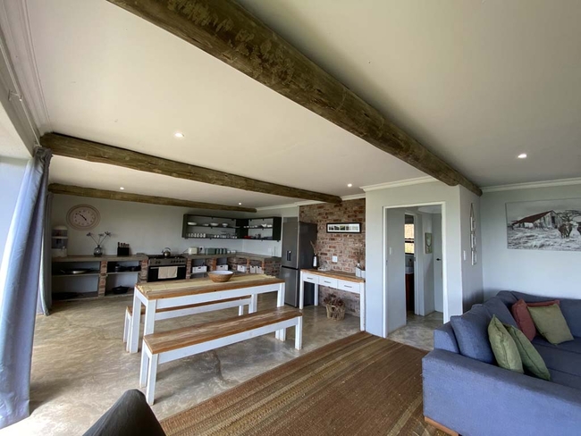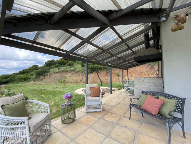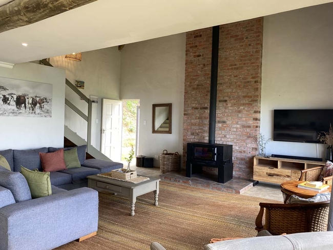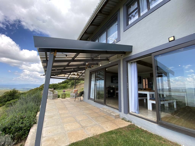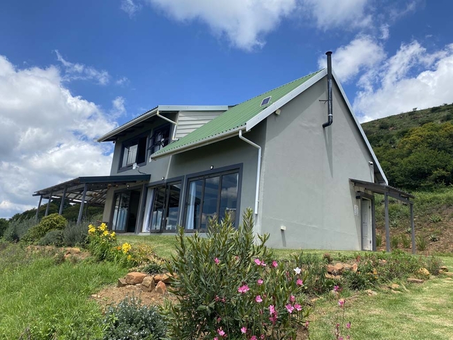 Perched up in the mountains lies Aloe Hill. This eight sleeper unit is self catering and pet friendly. There are 3 bedrooms updtairs, each room offering an exquisite view of the vast landscape. The first bedroom is furnished with a Queen-size bed. The second bedroom is furnished with a double bed and the third bedroom is furnished with a double bed and a bunk bed.There is one bathroom upstairs fitted with a shower, toilet and basin and one downstairs fitted with a shower and basin and a separate guest toilet and basin. The lounge, dining area and kitchen all flow into each other, all looking onto the rolling hills. The outside verandah allows the perfect space for ample relaxation, to soak up the sun and just enjoy the stillness at Proudfoot Holiday Farm.
