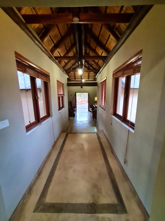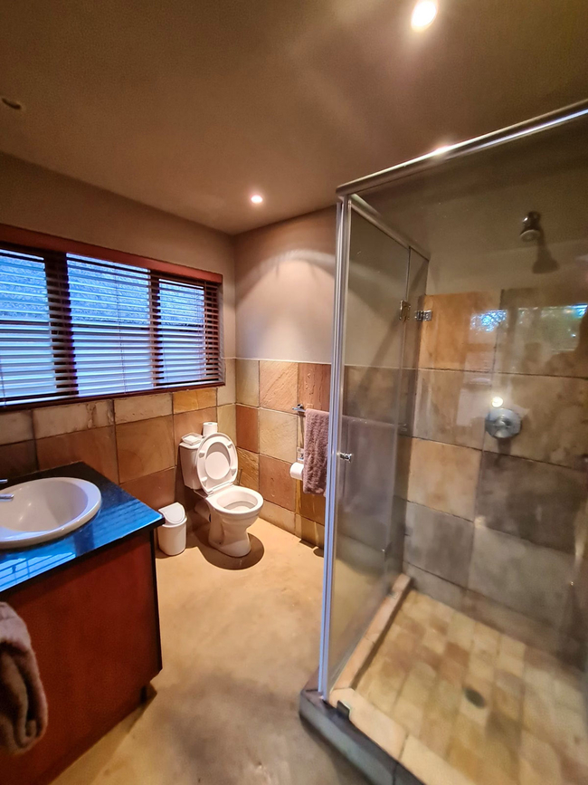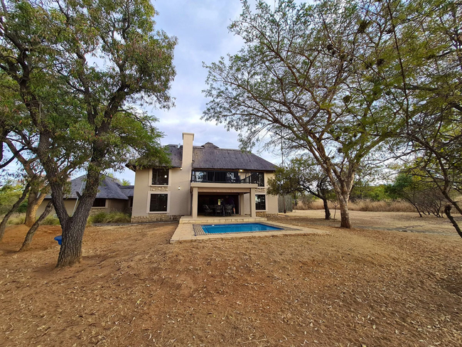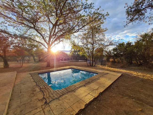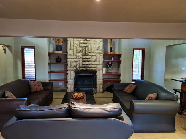 Pumba’s Place is a six-bedroom lodge conveniently located near the Zebula Golf Estate Clubhouse. With its inviting pool table, private boma, sparkling swimming pool, and several spacious living areas, it offers both comfort and charm, making it an excellent and affordable option for large families seeking a peaceful bushveld retreat. The lodge accommodates up to twelve guests in six beautifully appointed en-suite bedrooms. Two of the rooms feature king-size beds, while the remaining four rooms are fitted with twin beds. Each bedroom is equipped with air-conditioning and ceiling fans for year-round comfort. Four bathrooms include a shower, while the remaining two are fitted with a relaxing bath. The fully equipped kitchen provides all the essentials for self-catering, including a stove, oven, fridge-freezer, microwave, and a complete selection of cutlery and crockery. The main lounge features a comfortable seating area with a fireplace and opens to a large dining space that seats twelve guests, enclosed by canvas curtains when the weather turns cool. A second lounge includes a flat-screen TV with selected DStv channels and a DVD player, along with a pool table for indoor entertainment. Guests can enjoy both an indoor braai area and an expansive outdoor boma, ideal for evening gatherings under the stars. A raised deck offers a prime spot for sundowners or wildlife viewing, while the swimming pool provides a refreshing retreat on warm afternoons.