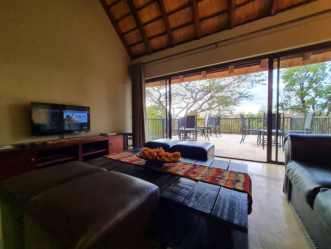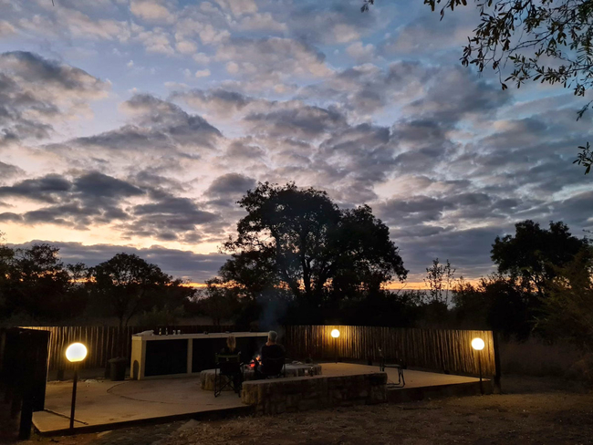 Guests can enjoy both an indoor braai area and an expansive outdoor boma, ideal for evening gatherings under the stars. A raised deck offers a prime spot for sundowners or wildlife viewing, while the swimming pool provides a refreshing retreat on warm afternoons.