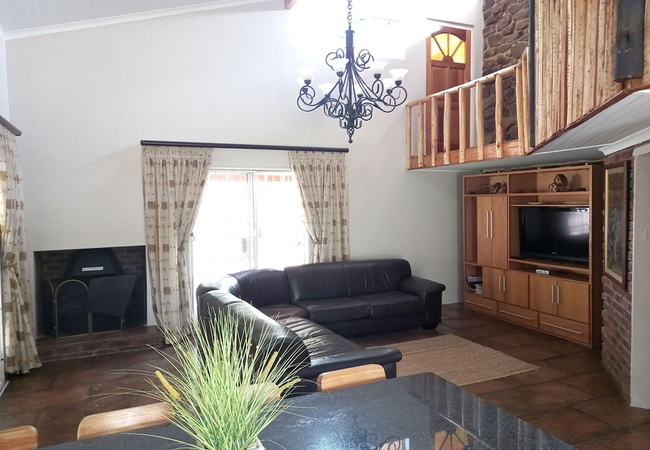 This luxurious spacious unit has three bedrooms and a loft, two of the bedrooms has Queen-size beds, built in cupboards and have on-suite bathrooms. The other bedroom has a double bed and shares a bathroom with the loft. The loft room has two single beds. All rooms are provided with fine quality linen and bath sheets. For your private use the unit is equipped with a fully fitted kitchen with 5 burner gas stove, microwave, large fridge/freezer and dishwasher. There is a dinette and comfortable lounge with TV, DStv with select channels. The unit has a patio with table and chairs and boma style braai area where guests can sit around a bushveld fire. The unit has a large garden and private pool area.