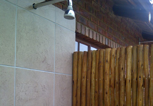 The unit has one large bedroom. The bedroom has a Queen-size bed, built in cupboard and romantic open plan bathroom with an outdoor shower. We provide fine quality linen and bath sheets. There is a single bed and fold out sleeper in the lounge for children below 12 years. For your private use the unit is equipped with a fully fitted kitchen, lounge with TV, DStv with select channels and BBQ area. The unit shares a splash pool that is 30m from the unit in the bush.