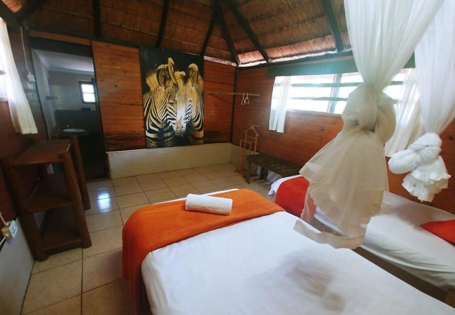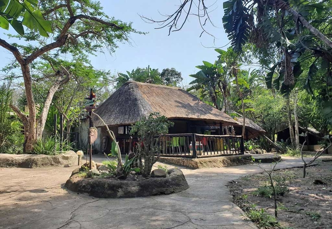 Pumusa Bushcamp offers various types of accommodation immersed in a tropical garden under large trees and flowering gardens that attract a great variety of birds and smaller antelope. There is a large lagoon style pool framed by palm shrubs adjacent to our popular Bar that boasts a large TV showing your favourite sports matches live.