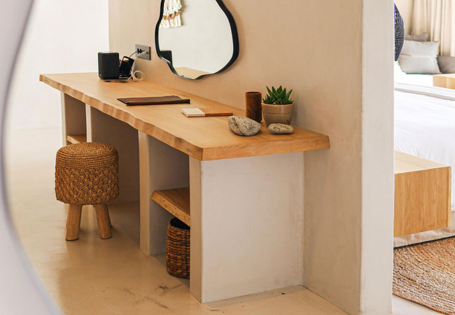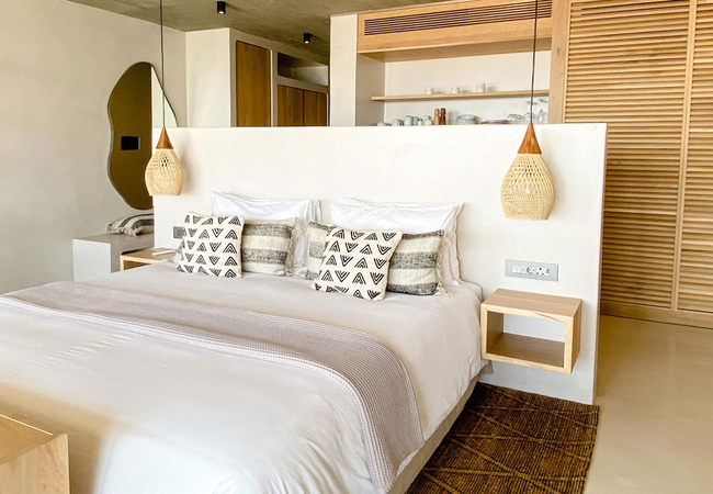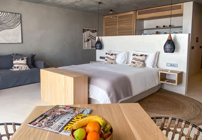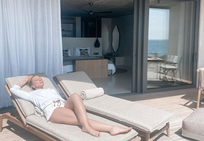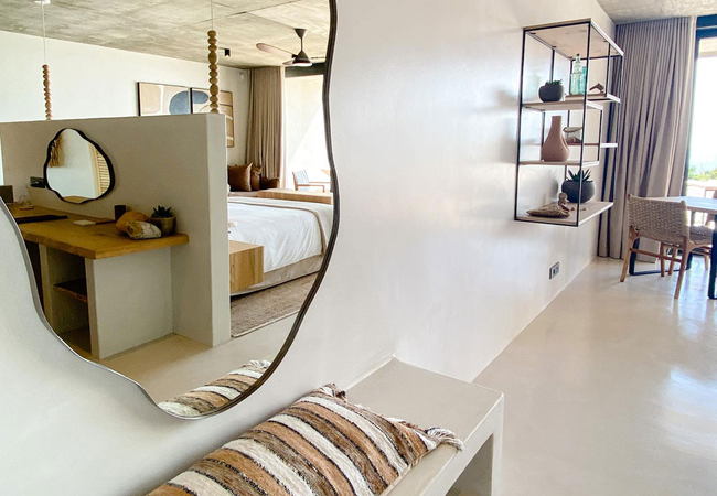 The suites have cosy lounge areas and they are equipped with hidden TVs, Nespresso machines, Wi-Fi, Kangenwater, safes for valuables, and Bluetooth speakers. Each of the suites opens onto a veranda with a hanging chair, and guests will receive a beach bag with organic cotton towels and binoculars.