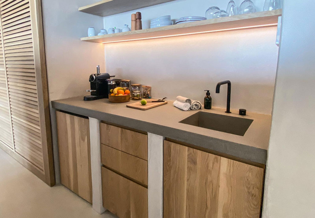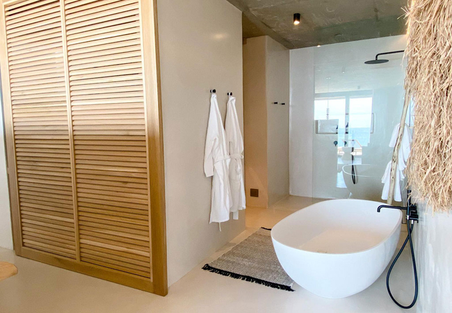 San King Suite is furnished with a King-size bed and opens onto a veranda with lovely sea views. The en-suite bathroom is fitted with a rain shower and a bath. A TV, Nespresso machine, Wi-Fi, safe and Bluetooth speaker are provided in each suite. This double room's standout featureis the pool with a view. The double room's kitchenette, which has a refrigerator and a tea and coffee maker, is available for cooking and storing food. The spacious double room features air conditioning, a private entrance, a terrace with sea views as well as a private bathroom boasting a walk-in shower.
