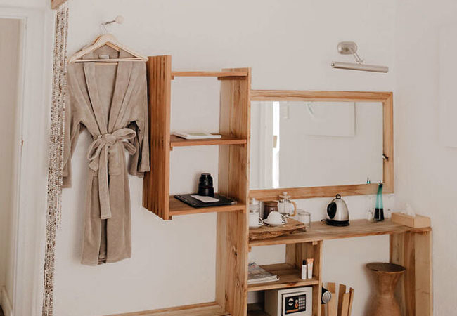 Truly unique, starting life as a stable, meticulously converted into beautiful guest accommodation. Also known as our honeymoon suite it is our biggest room with stunning views right from your bed. Cozy fireplace will keep you warm in winter. The Stable Suite boasts its own chill out deck with hanging basket chairs to enjoy the beautiful gardens and mountain views.This suite is furnished with a super King-size bed and a bathroom fitted with a freestanding bath, shower, toilet and basin. The room is equipped with gowns, slippers, and tea and coffee making facilities.
