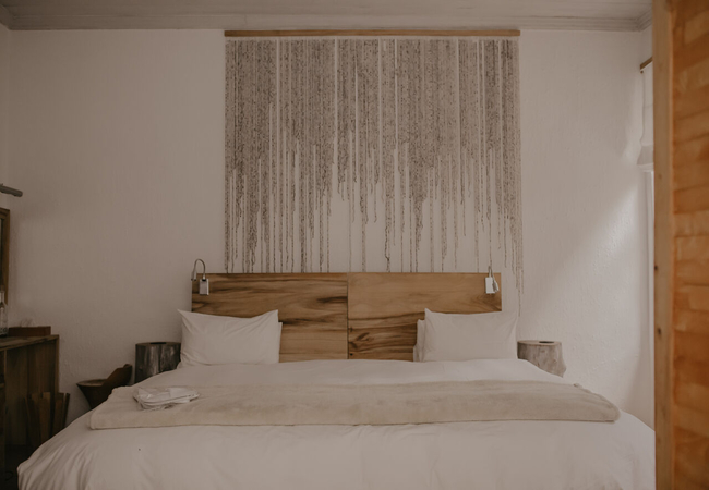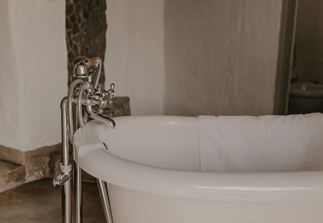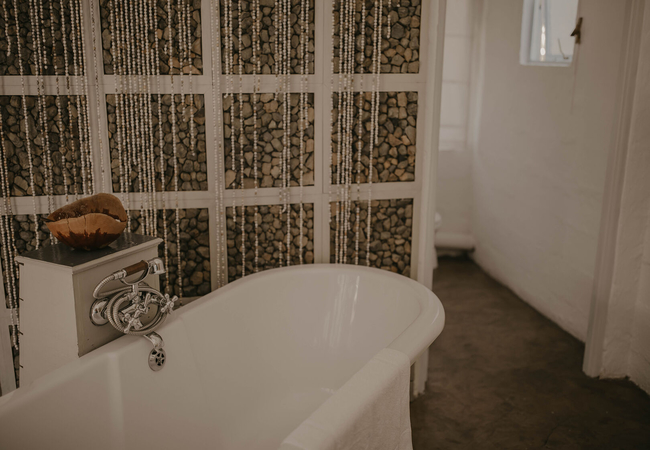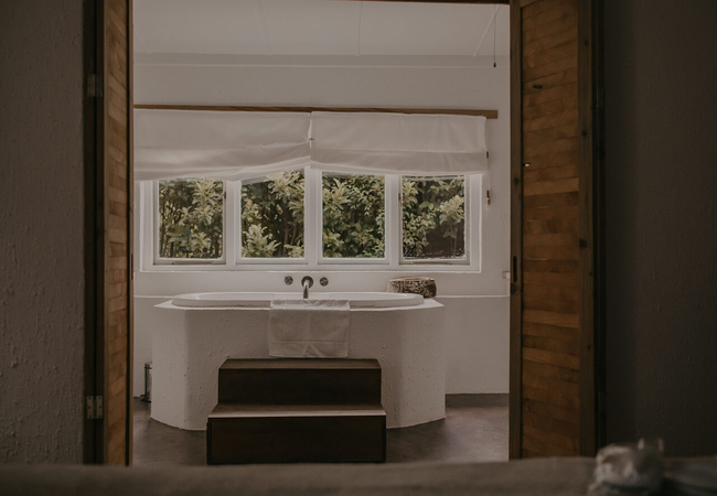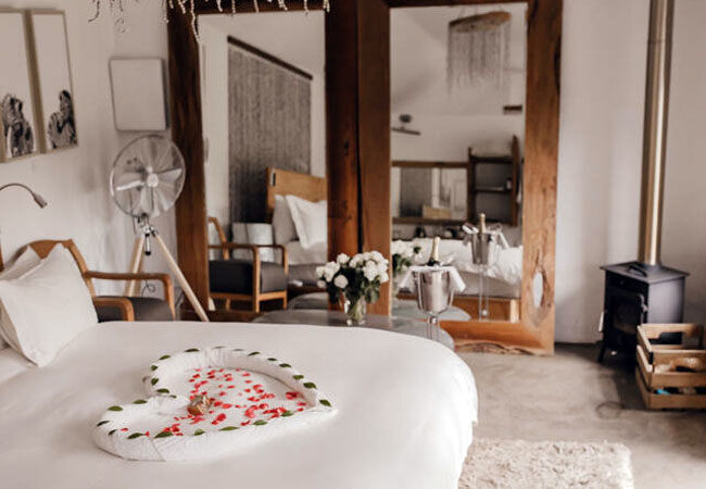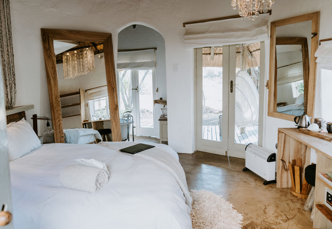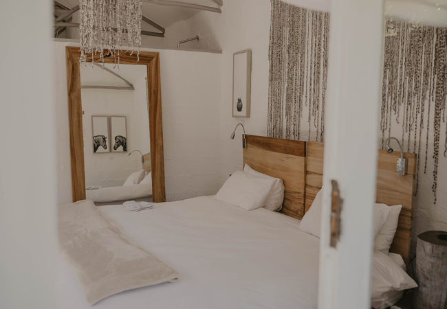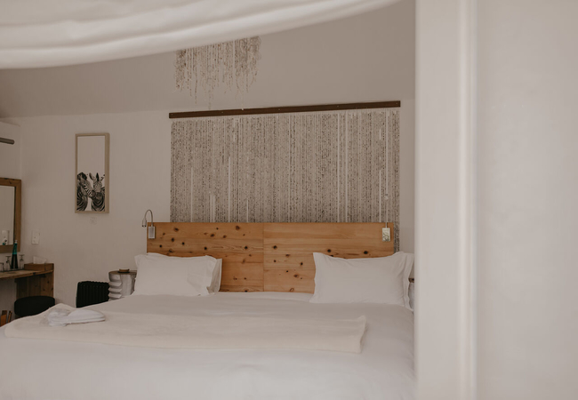 The Farmhouse Room is part of the original farm house built in 1918, now the main lodge. Our entry level room has direct access to the pool deck, chill out lounge, bar and is not far from the wine cellar. The room boasts luxury finishes and is furnished with a super King-size Camphor bed and an en-suite bathroom fitted with a hand crafted sink, free standing bath and walk-in shower. The room is equipped with gowns, slippers, and tea and coffee making facilities.