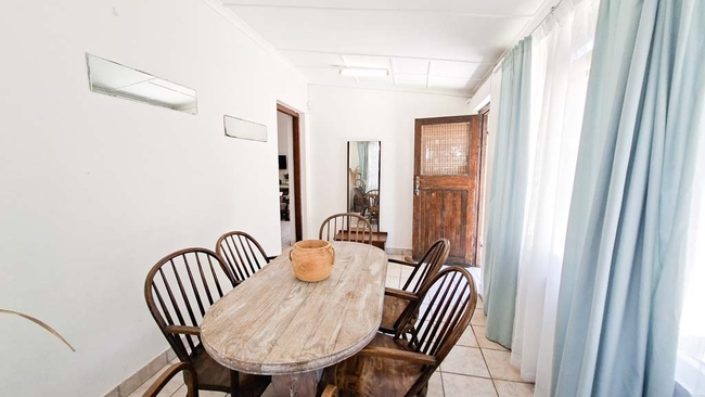 Queen Street 60 Holiday Home is suited to accommodate 15 guests in four bedrooms. Bedrooms one and three are each furnished with a Queen-size bed. Bedroom 2 is furnished with a double bed and bunk bed. Bedroom 4 is furnished with two single beds. There are two single beds in the lounge area and then there is a bunk bed and another single bed close to the entrance of the house. Bathroom 1 is fitted with a bath, shower, toilet and basin. Bathroom 2 is fitted with a bath with an overhead shower, toilet and basin. There are two fully equipped kitchens, lounge areas, a dining area, and a TV. Guests must please bring their own decoder for DStv. This unit also comes equipped with a braai area and its own private entrance. On-site facilities include secure parking.