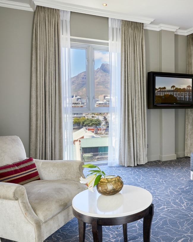 Offering exceptional views of Table Mountain and the harbour, the exclusive Junior Mountain Suite is a superb option for a luxurious stay. This 63 square metre suite includes a range of luxurious amenities and has a balcony with views. The room is furnished with a King-size bed and has an en-suite bathroom fitted with a bath, shower, toilet and basin. There is a mini bar, TV with satellite channels, air conditioning, a safe and tea / coffee making facilities.