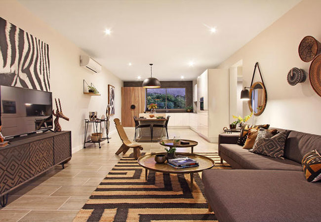 The covered patio is the perfect place for a relaxed breakfast with magnificent mountain views as well as the perfect sundowner location providing a stylish and comfortable dining and lounge area.