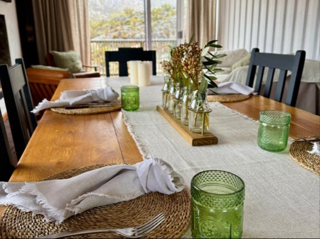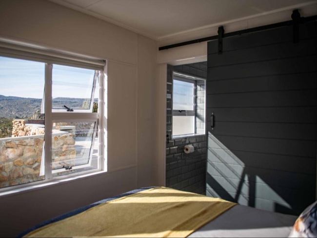 A balcony provides sweeping views of the surrounding landscape, and the outdoor braai area invites guests to enjoy meals in the crisp mountain air. With its combination of quiet seclusion and access to scenic trails, this location is perfectly suited for hiking, mountain biking, or simply embracing the stillness of nature.