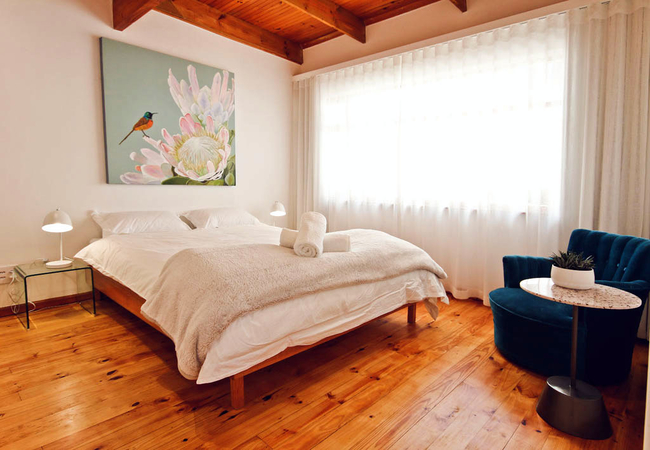 Colonel's Room has a Queen-size bed and en-suite bathroom. This suite has a terrace that has beautiful views of the ocean and the Helderberg area. All the guests have access to a swimming pool, gym, parking as well as free Wi-Fi. The suite is wheelchair accessible.