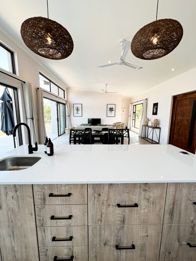 The villa is fully equipped with modern conveniences, including air conditioning, a ceiling fan, Wi-Fi, DSTV and streaming services, a TV, and a fireplace for cooler evenings. The kitchen provides all essentials, such as an oven, refrigerator, toaster, coffee and tea facilities, and a washing machine.