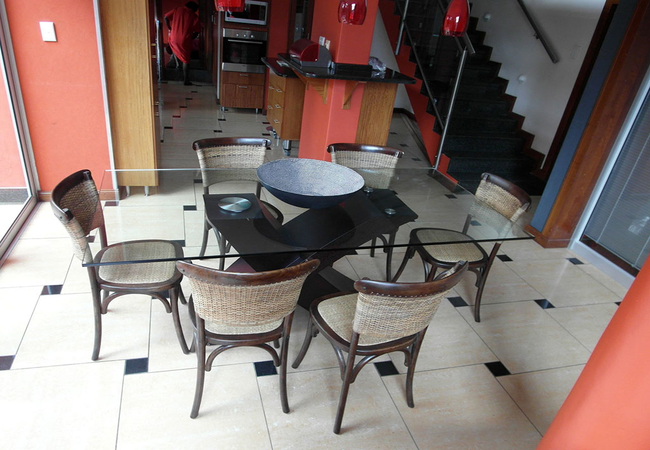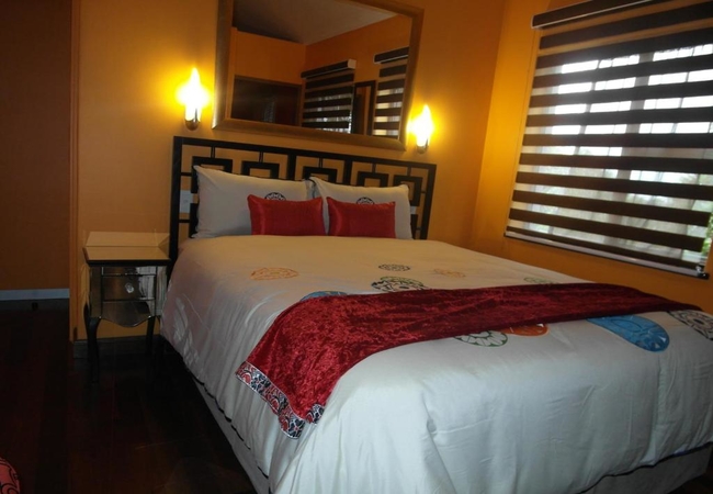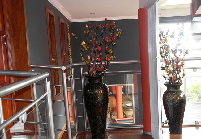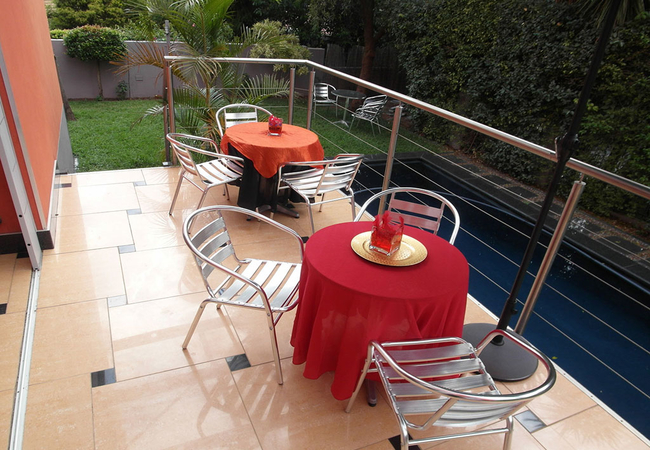 The guest rooms are located on the first floor and are unique with a beautiful colour scheme. Rooms range from cosy to spacious with queen and king-size beds. Room are tastefully furnished in warm colours and a stylish en-suite bathroom with shower or a corner tub. The rooms also have DStv, bluetooth music system, microwave and tea- and coffee-making facilities among other things.