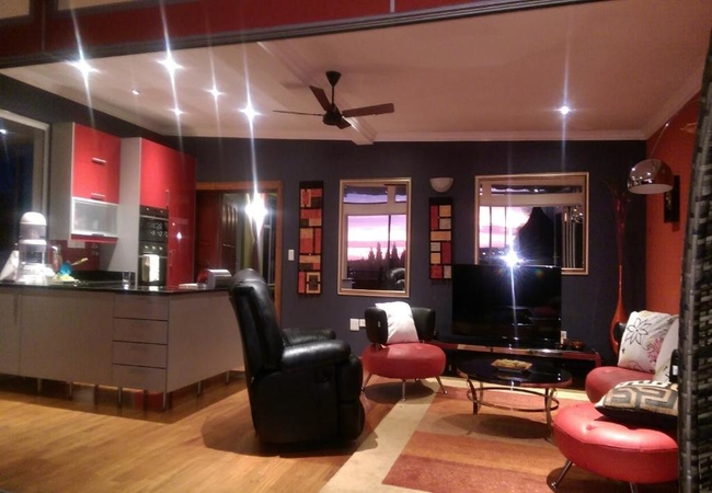 Red Square Home offers accommodation in Pretoria within a gated community in the serene and exclusive part of Pretoria East called Erasmuskloof. This is a modern, extraordinarily architect-designed house with 3 floors, lots of glass, aluminium, black granite and beautiful rosewood interiors.