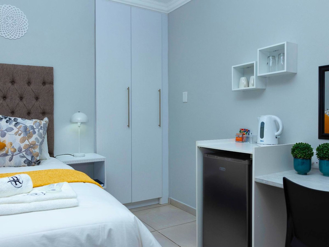 Guests can select from five tastefully appointed rooms, each featuring either a luxurious queen or king bed, a flat-screen TV with DStv, complimentary Wi-Fi, a bar fridge, and coffee/tea-making amenities.