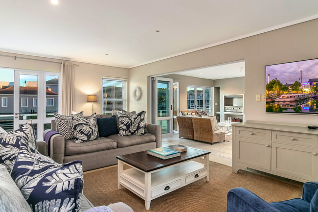 Resort Living on the Water, located in the prestigious Thesen Islands Estate and Marina, offers a luxurious self-catering holiday experience. This renowned estate, known for its private beaches and serene boating canals, is lined with charming Cape Cod-inspired homes.