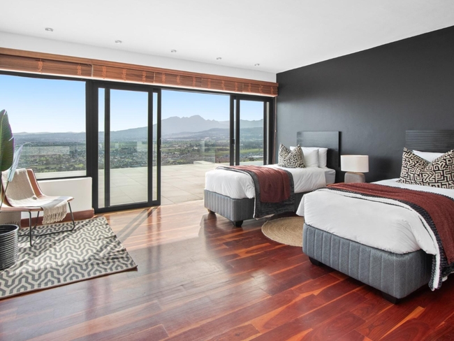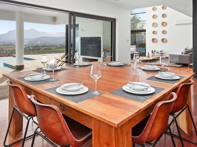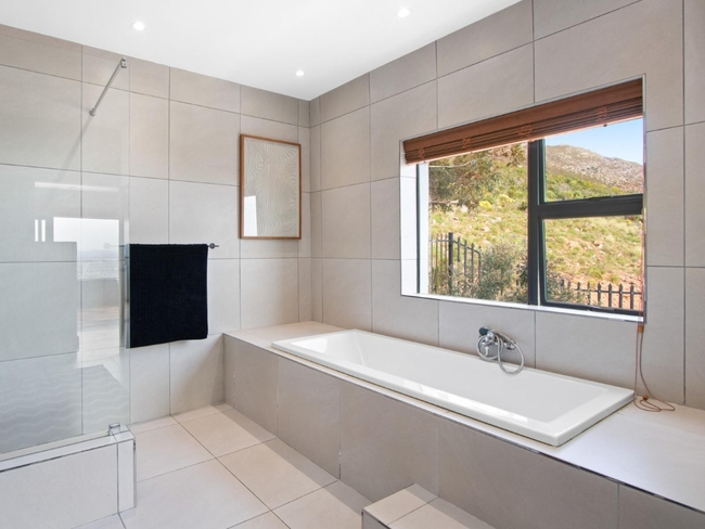 The family-friendly accommodation boasts a thoughtfully designed interior that caters to both relaxation and entertainment. The spacious lounge area, equipped with a flat-screen TV and air conditioning, provides a comfortable space for guests to unwind after a day of exploration. Adjacent to the lounge, a well-appointed dining room opens onto a balcony, offering the perfect setting for memorable meals with a view. The fully equipped kitchen ensures that culinary enthusiasts can prepare delicious meals with ease, making use of modern appliances including a refrigerator, coffee machine, microwave, dishwasher, oven, washing machine, and tumble dryer. Restio View 11 features three generously sized bedrooms, each with its own en-suite bathroom for ultimate privacy and convenience. The master bedroom is a true sanctuary, boasting a plush queen-size bed, a private balcony, and luxurious his-and-hers basins. The second bedroom offers the comfort of air conditioning and two single beds, ideal for children or friends sharing. The third bedroom, furnished with a queen-size bed, completes the sleeping arrangements, ensuring ample space for up to six guests. To maintain a pleasant environment for all, the property enforces a strict no-smoking policy indoors and does not allow pets. However, the outdoor areas more than compensate for these restrictions. Guests can enjoy the private outdoor pool, perfect for cooling off on warm days, or make use of the BBQ and picnic area for delightful al fresco dining experiences. The property also offers secure parking, providing peace of mind throughout your stay. Modern amenities are not overlooked at Restio View 11. High-speed WiFi keeps guests connected, while access to Netflix ensures entertainment options are always at hand. The property's elevated position affords stunning sea and mountain views, creating a constant reminder of the natural beauty that surrounds Gordon's Bay.