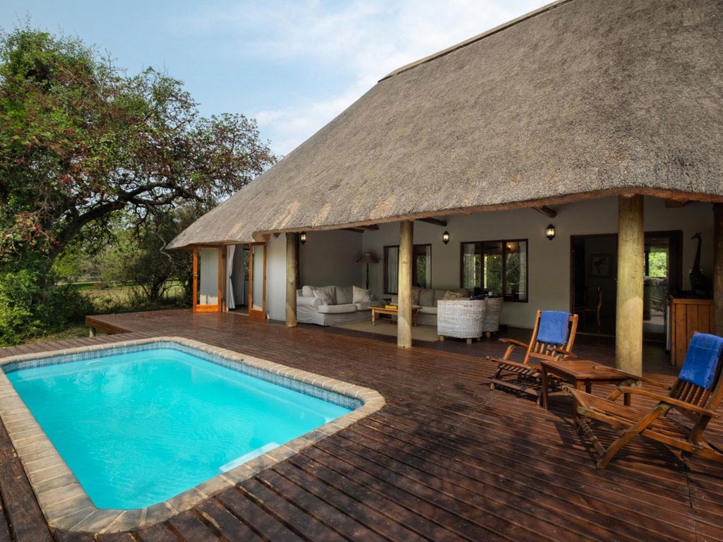 Rhino River Cottage is a holiday home in Hluhluwe withe two en-suite bedrooms each furnished with twin beds pushed together and are complete with air conditioners and stunning views. The en-suite bathrooms are fitted with a shower, toilet and basin. There is a loft style bedroom with two single beds and a third downstairs bathroom. The Cottage features a cosy lounge and a dining room, as well as a fully functional kitchen. The covered veranda with comfy furniture and the private swimming pool overlooking the Msunduze River are the star features of this comfortable house. Leading off the lounge area is a private plunge pool sunken into the outside viewing deck.