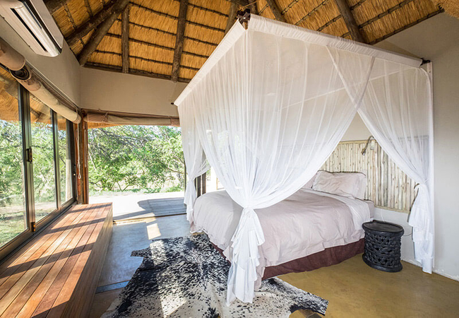 This modern-styled home was designed to highlight the natural surroundings. The Homestead is equipped with air conditioning and a fully functional open plan kitchen. Stacking doors in the spacious lounge fully open onto a private deck at the edge of the camp‘s boundary with un-touched bushveld views.