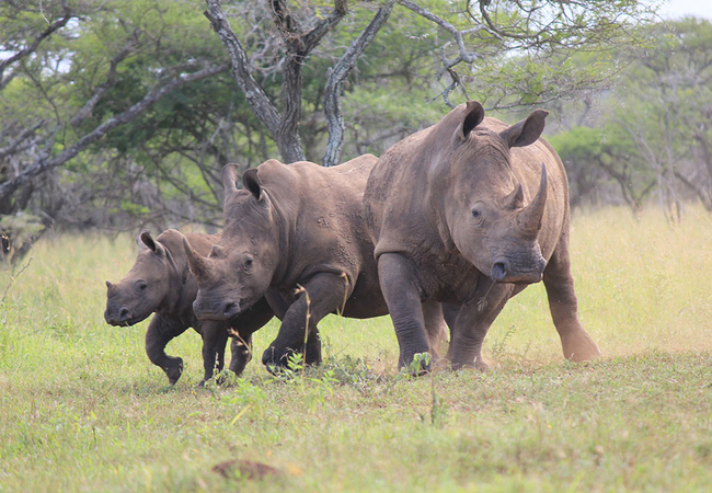 Rhino River Homestead offers Hluhluwe accommodation on a privately-owned game reserve with some of the best game viewing Zululand has to offer. Watch as the theatre of nature comes to life in vivid, startling colour. Scout white rhino and elephant, glimpse the reclusive black rhino slipping through the riverine bush; hear the prowling leopard's rasping nigh-time cough; delight in the sheer variety of gentle antelope; be dazzled by the herds of zebra; look up at the ever-curious giraffe.