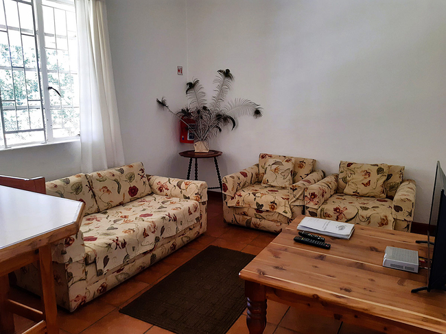 Inside every cottage, you will find ample built-in cupboard space, fitted countertops, and furnishings that ensure a comfortable stay. Each unit includes a television with a curated selection of DStv channels, including news, sports, movies, and children's entertainment. The kitchens are fully outfitted with a refrigerator featuring a freezer compartment, a stove with oven, a microwave, kettle, toaster, and a complete array of crockery, cutlery, and cooking utensils.