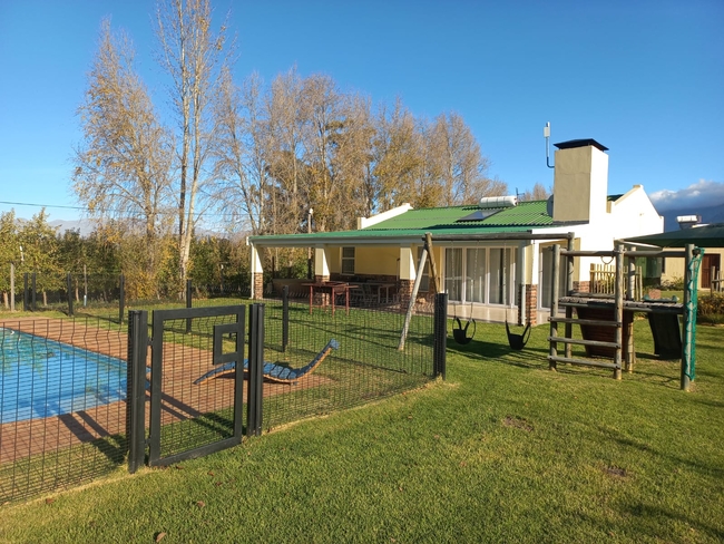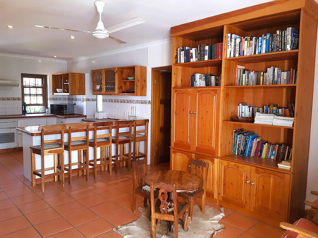 Voëlvlei House is a contemporary, stand-alone farmhouse situated near the base of the mountain, offering a peaceful retreat surrounded by nature. The property boasts a private, fenced garden, a saltwater swimming pool, and a jungle gym, making it ideal for families. Accommodating 8 to 10 guests, the house features four bedrooms—two furnished with king-size beds and the other two with a total of six single beds. Bed configurations can be adjusted in advance to suit your needs. The home includes three bathrooms, ensuring comfort and convenience for larger groups. A spacious, modern kitchen is fully equipped for self-catering and includes a separate scullery with both a dishwasher and washing machine. The expansive living room combines a cosy lounge and dining area, while a vine-covered stoep offers a shaded space for outdoor relaxation. Guests are welcome to enjoy a curated selection of books during their stay. A private wood-fired hot tub, exclusive to Voëlvlei House, is set on the lawn near the verandah and pool. Seating up to four people, this secluded feature provides a tranquil space to unwind while taking in the natural surroundings. Use of the hot tub is available by pre-booking and incurs an additional weekend charge.