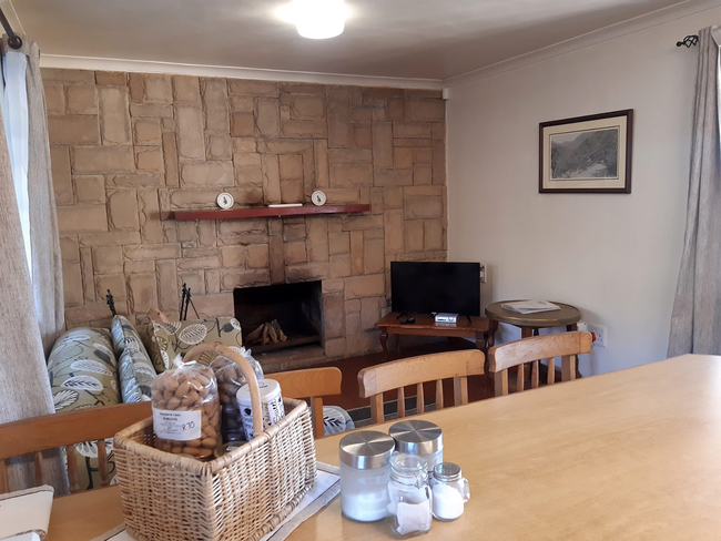 Voëlvlei Cottages No. 2 offers spacious and contemporary accommodation for up to four guests. The main bedroom is appointed with a king-size bed, while the second bedroom includes two single beds, with alternative bed configurations available on request. The cottage features two well-appointed bathrooms: one en-suite with a bath, shower, toilet, and basin, and a second bathroom equipped with a shower, toilet, and basin. The open-plan design enhances the generous living area, which includes a comfortable lounge and a fully equipped kitchen. For added comfort, the cottage is fitted with underfloor heating and a cast iron fireplace, making it ideal for all seasons. Shaded parking is provided for guest convenience.