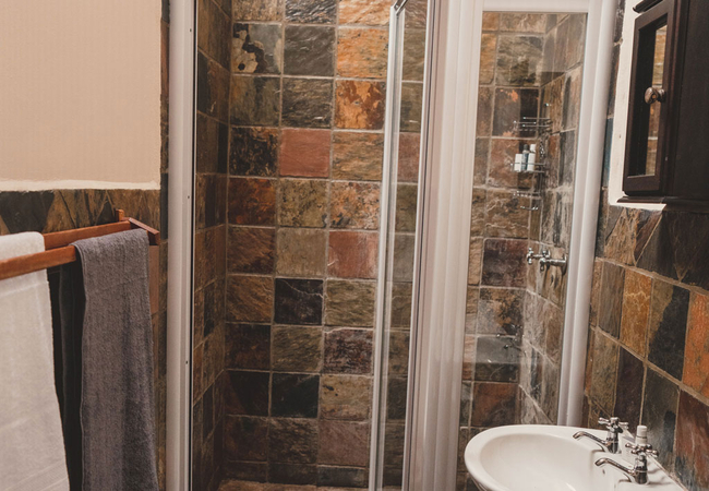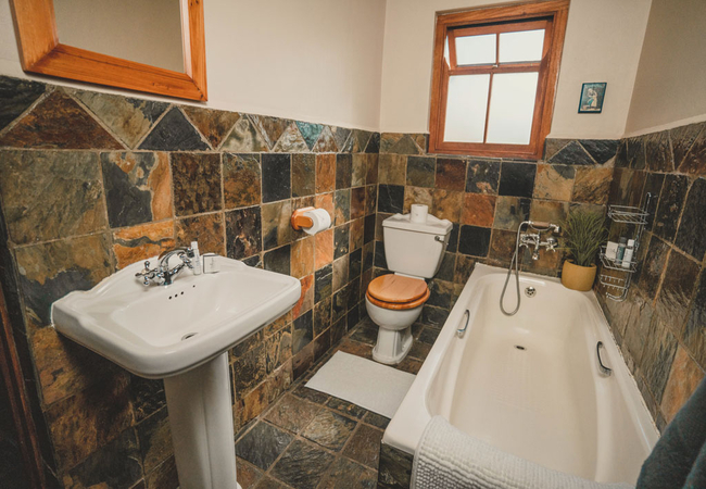 The kitchen is fully equipped and includes a stove, oven, microwave, tea / coffee making facilities, toaster, a fridge / freezer and a four seater dining area where guests can enjoy their meals. The living area is furnished with comfortable furniture and an indoor fireplace.